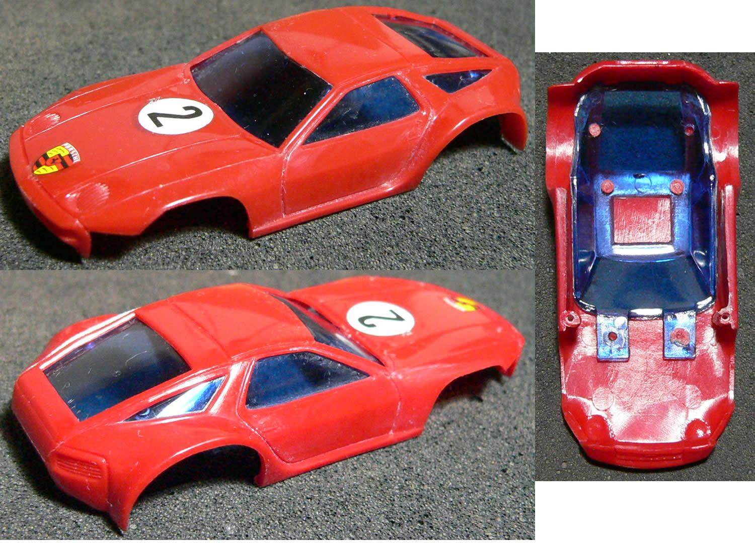 Sehr schöne Schraub-Karosserie ohne Spielspuren, keine Brüche, mit Porsche-Logo