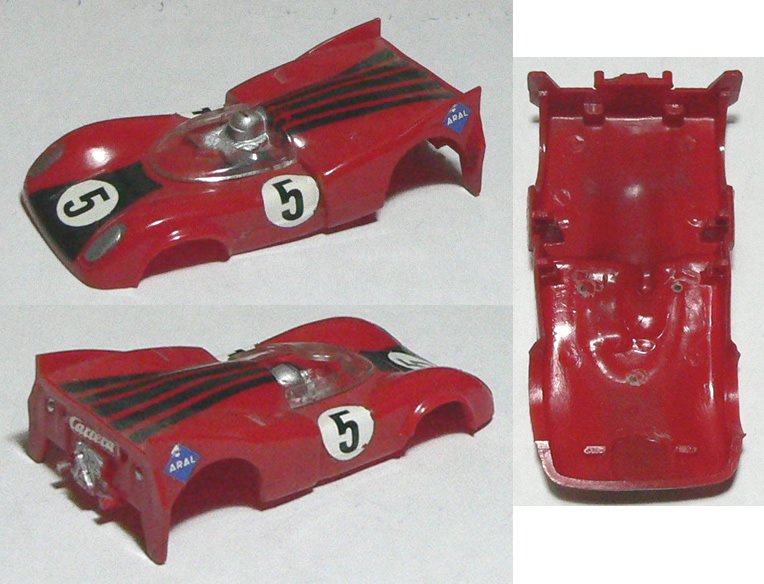 Alfa T33 (68408) Karosserie mit minimalen Spielspuren, keine Brüche, alle Haken ok.Wie bei allen Alfas: leichter Verzug nach rechts.