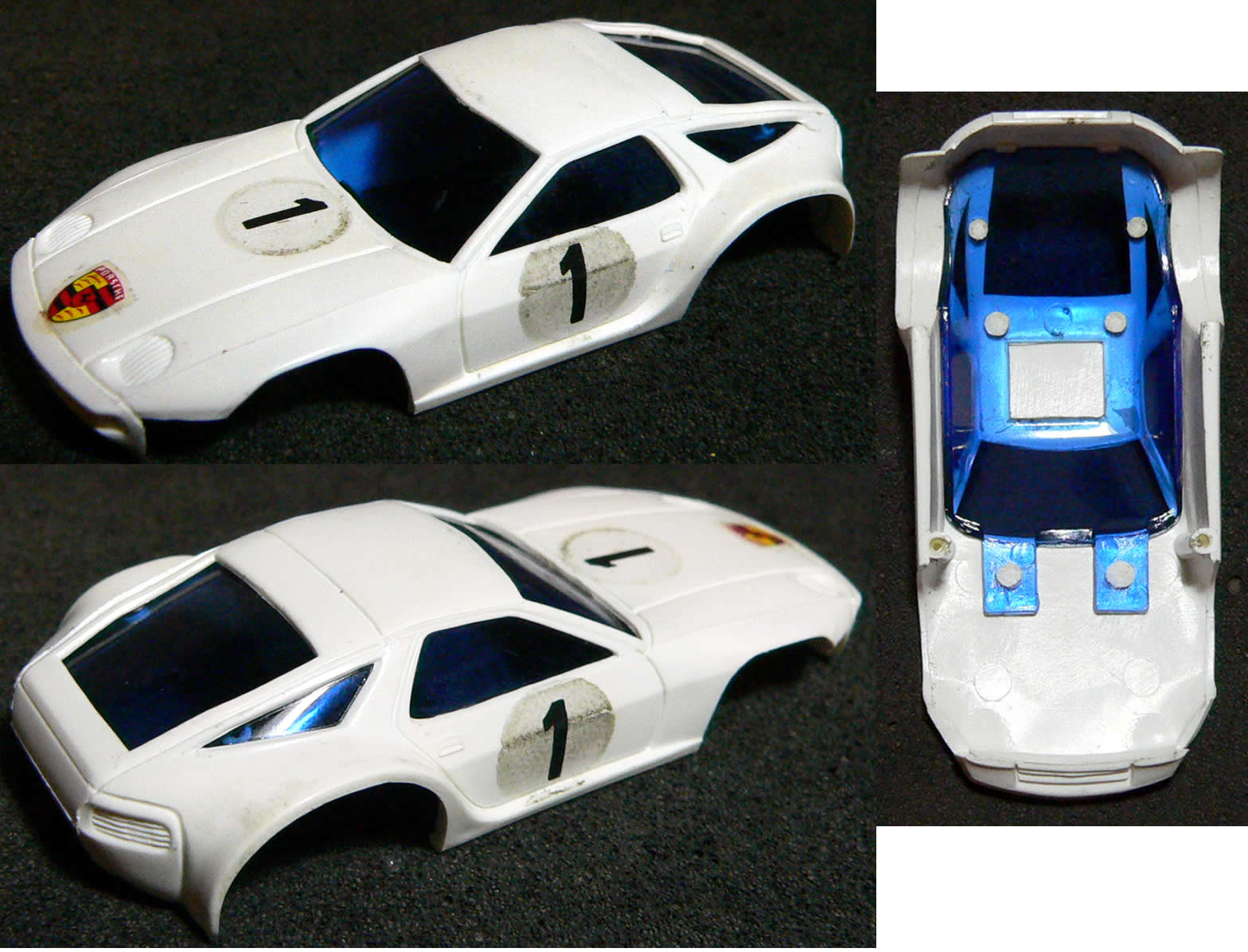 Schöne Schraub-Karosserie, geringe Spielspuren, keine Brüche, mit Porsche Logo