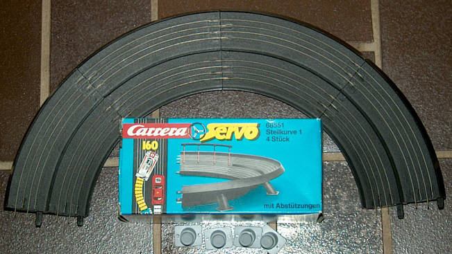 Hinweis: Diese Steilkurve ist schwierig anzufahren (Carrera hat sie nur kurz im Programm gehabt). Empfohlen wird die Anfahrt durch zwei 1-spur Geraden 68580.